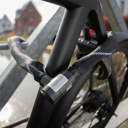 "Dit Lynx kettingslot met het ART 2 keurmerk biedt de juiste bescherming voor je fiets tegen diefstal. De zachte, maar sterke flexibele mesh hoes voorkomt beschadigingen aan het frame van de fiets....